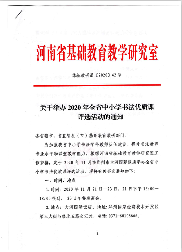 关于举办2020年全省中小学书法优质课评选活动的通知